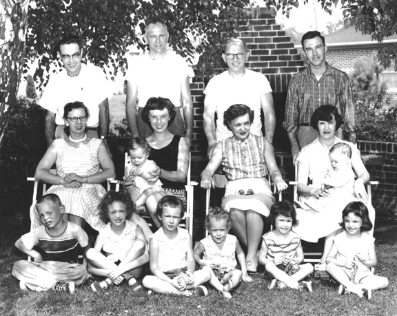 McNey / Crouthamel / Schealer Clans 1959 Nancy Middle Row - 2nd From Left Holding Claudia Dick Behind Sally, Martha and Susan at her feet |